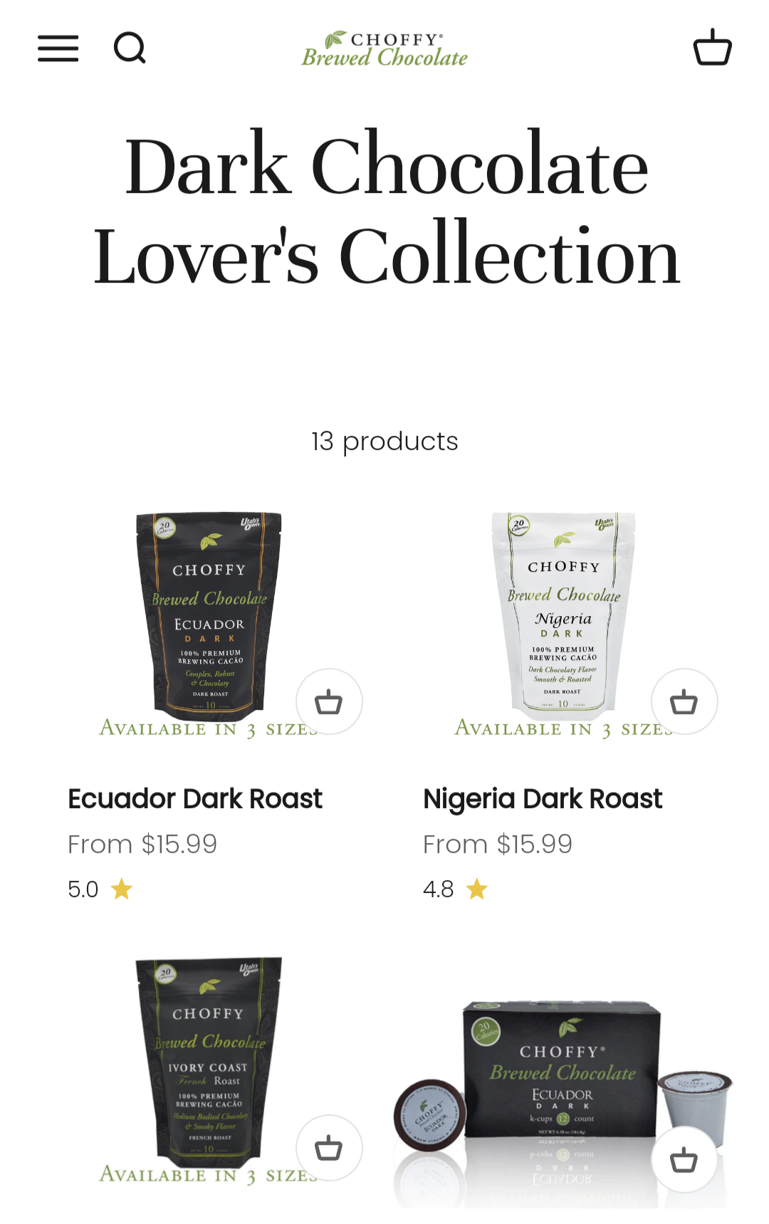 Choose between our amazing flavor collections, or by our different package types (bagged product or Single Serve Cups)