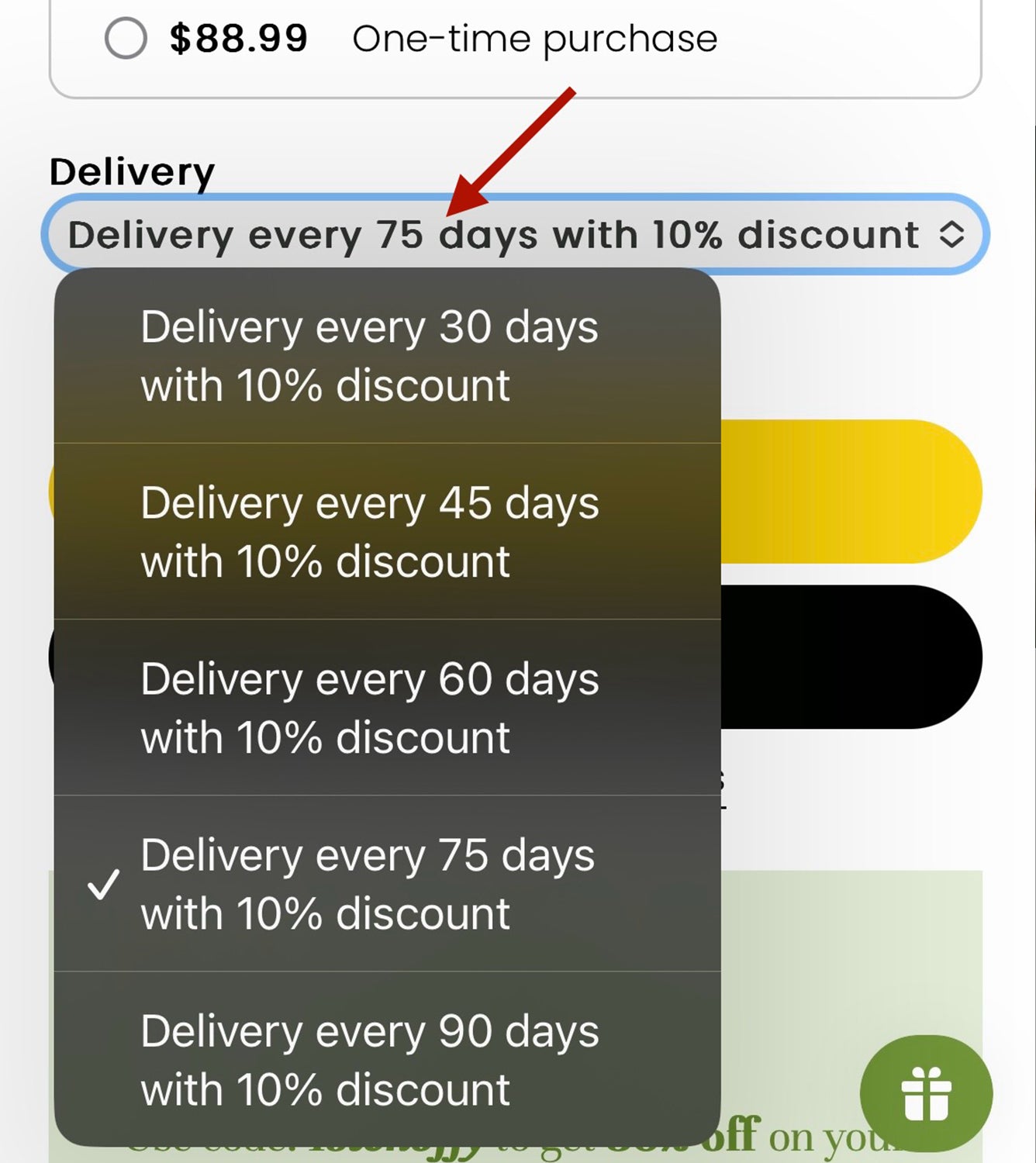 Choose what frequency you would like to set up your orders to come.
