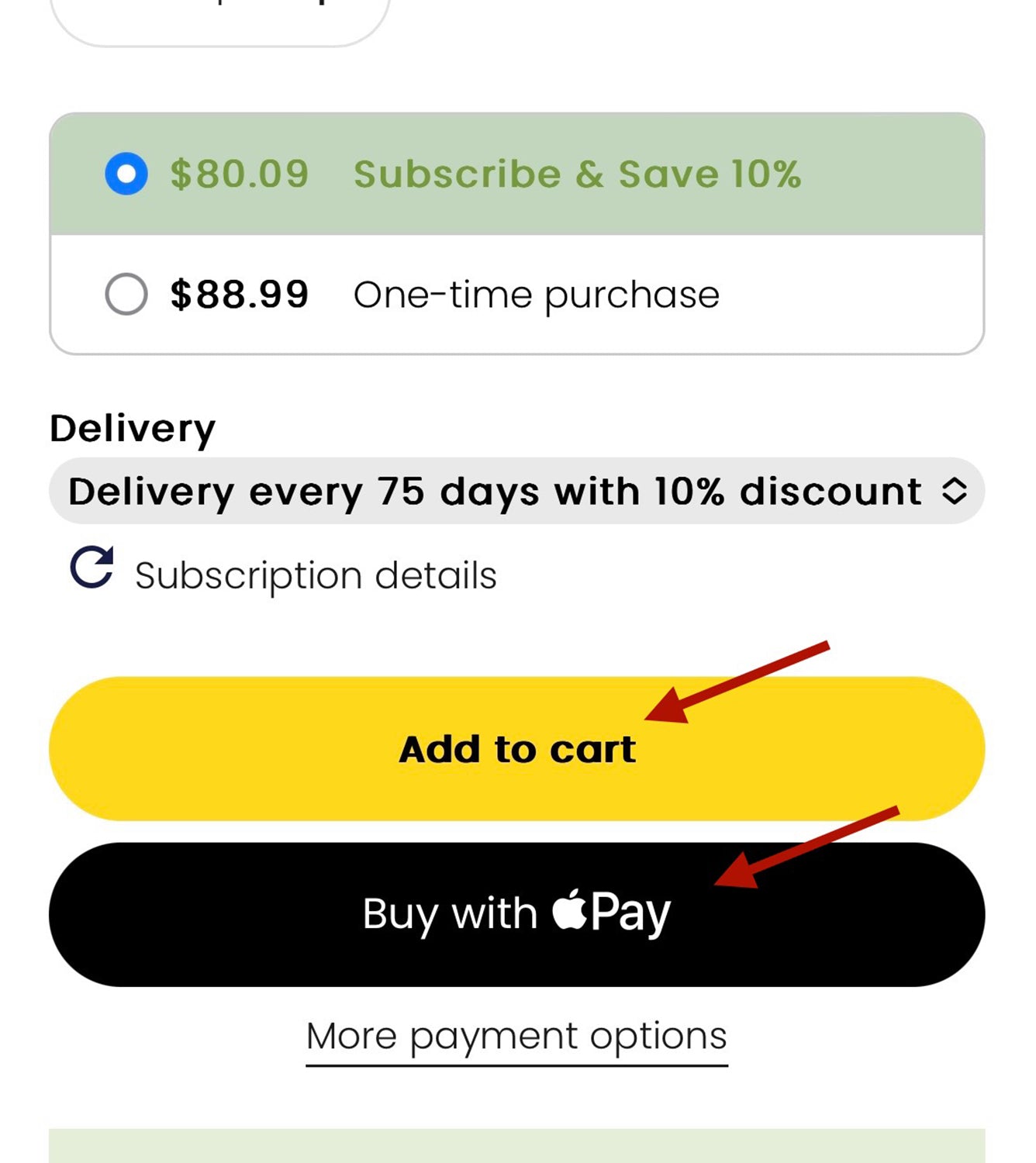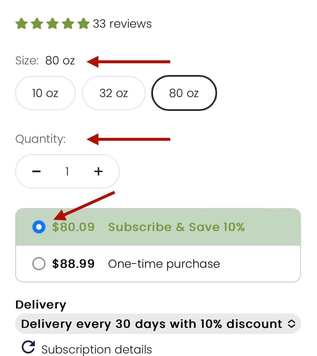 Pick the size and quantity you'd like and click on the "Subscribe & Save 10%" button.